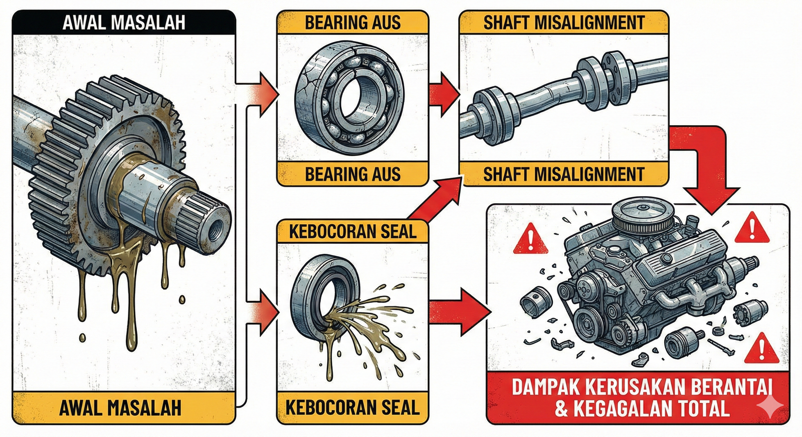 - Risiko Fatal: Lebih parah lagi, bearing bisa saja rusak di bulan ke-4, padahal jadwal penggantian resmi masih 2 bulan lagi.
