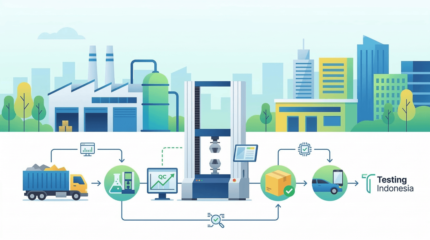 Testing Indonesia menyediakan berbagai solusi pengujian material, termasuk sistem Universal Testing Machine yang dapat digunakan untuk pengujian plastik, polimer, maupun komposit di berbagai sektor industri.