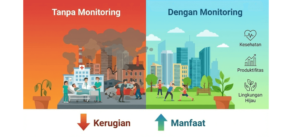 perlu kamu ketahui bawah monitoring kualitas udara bukan hanya sekedar aktivitas pengukuran rutin. Lebih dari itu, kegiatan ini menjadi dasar penting dalam menjaga kesehatan kita dan lingkungan yang kita tempati. Udara yang tercemar dapat menyebabkan berbagai penyakit seperti memicu gangguan pernapasan, penyakit kardiovaskular, hingga menurunkan kualitas hidup masyarakat.