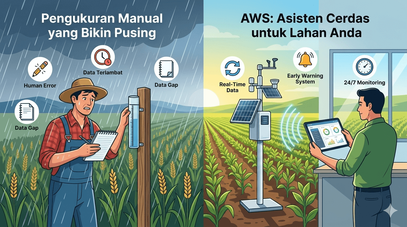 Di sinilah peran Automatic Weather Station (AWS) hadir dan menjadi sangat krusial untuk memutus rantai risiko tersebut. Perangkat ini telah berevolusi melampaui fungsinya; bukan sekadar alat ukur cuaca konvensional, melainkan sebuah sistem cerdas untuk pengambilan keputusan strategis yang sepenuhnya digerakkan oleh presisi data.