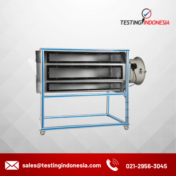 This unit comprises a tunnel, a wind turbine with adjustable rotor blades (up to three blades), and a variable speed axial fan, which allows power adjustment by modifying the wind speed. These components facilitate the study of various conditions and different speeds of a wind turbine.