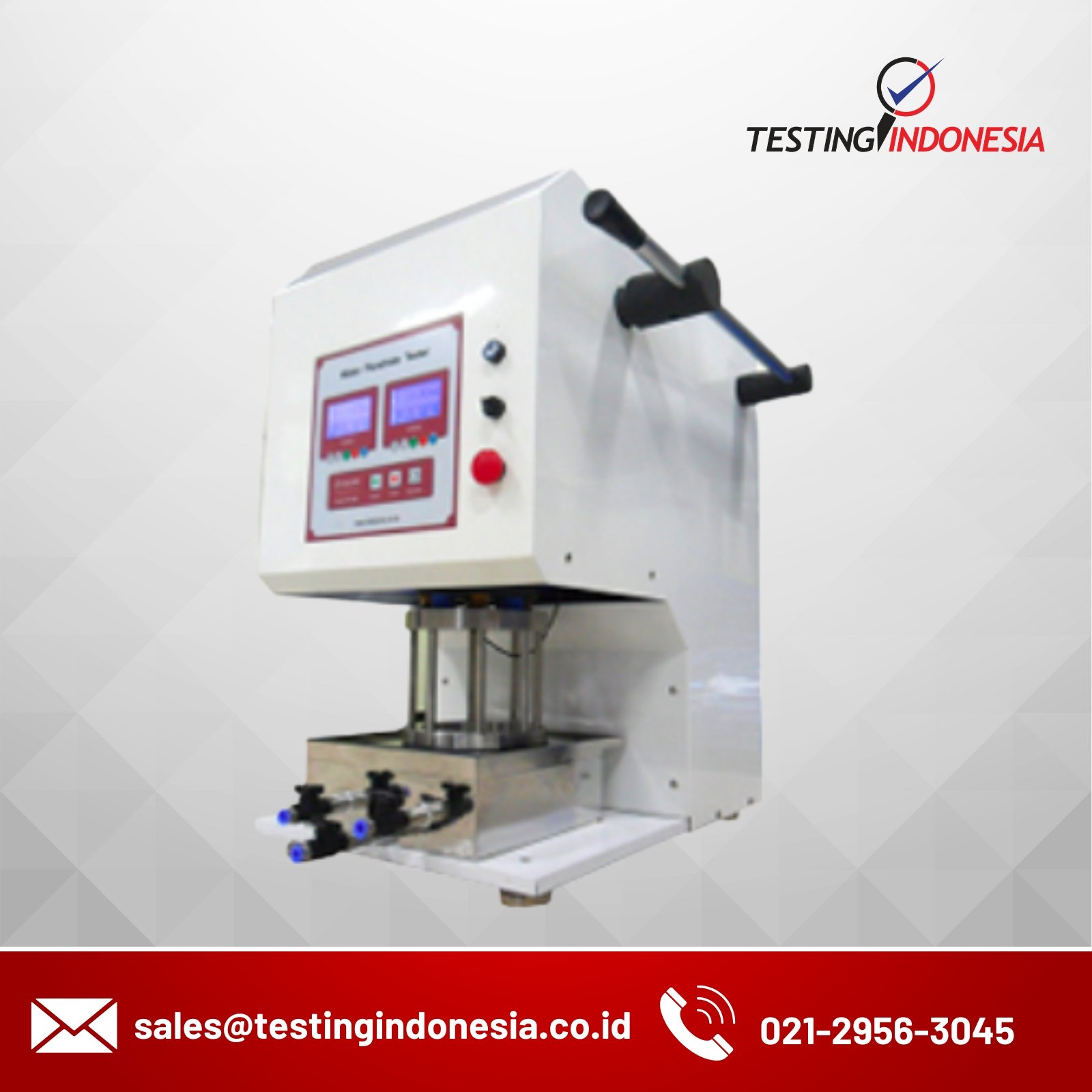 This tester measures the hydrostatic pressure of products as fabrics, textiles, leather, etc. There are two methods to test: high range hydrostatic presssure method (6kgf) and low range hydrostatic pressure method (1kgf). This tester was designed based on the low range hydrostatic pressure method. With a constant pressure, water is supplied from the bottom of the specimen.The pressure is measured and tested when certain water droplets are shown.