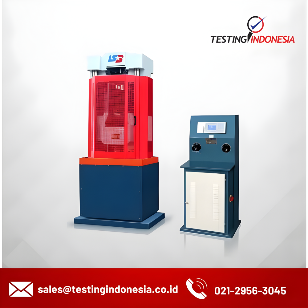 Testing machine ini, yang juga dikenal sebagai tensile machine, digerakkan oleh tenaga hidrolik. Alat ini utamanya dirancang untuk melakukan uji tensile dan compression pada material logam.